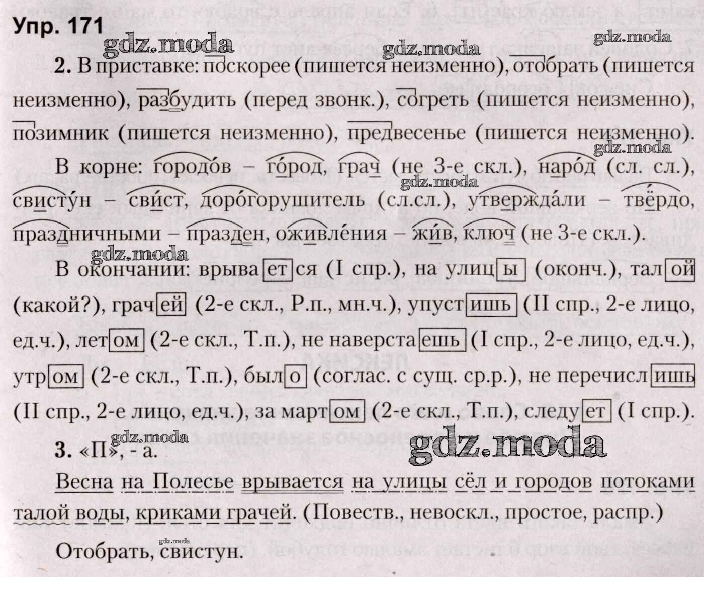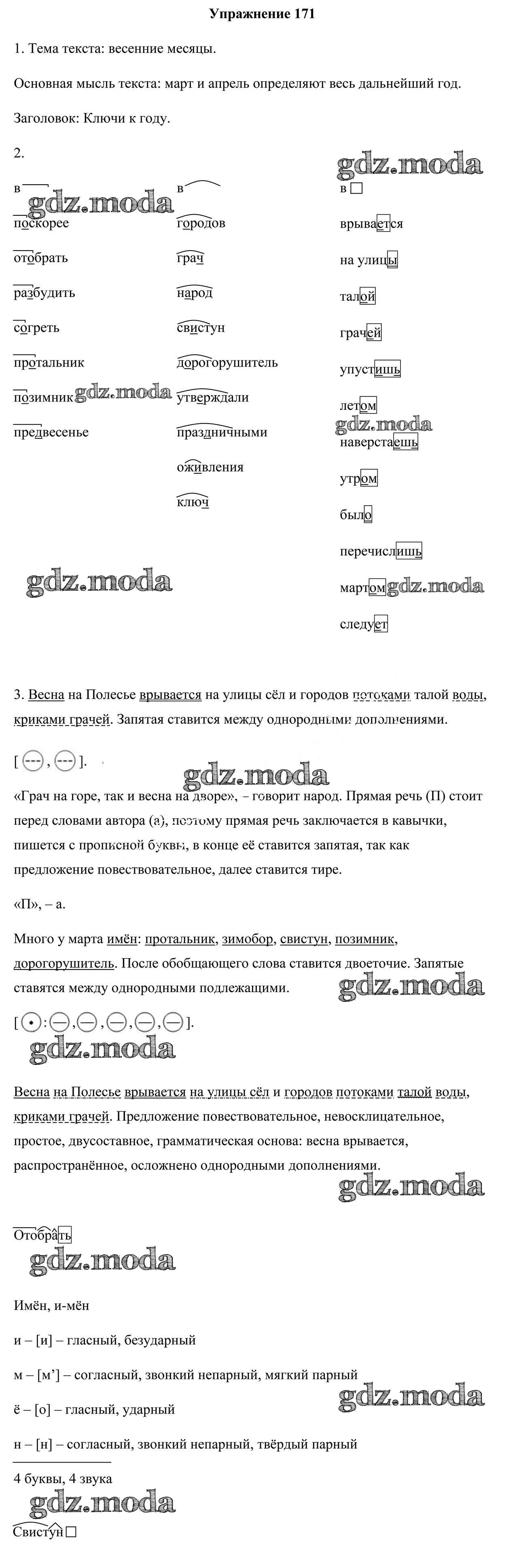 ОТВЕТ на задание № 171 Учебник по Русскому языку 5 класс Мурина