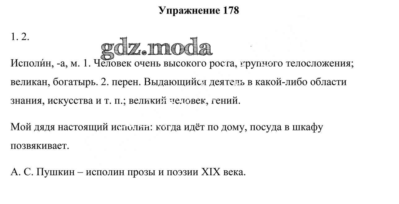 ОТВЕТ на задание № 178 Учебник по Русскому языку 5 класс Мурина