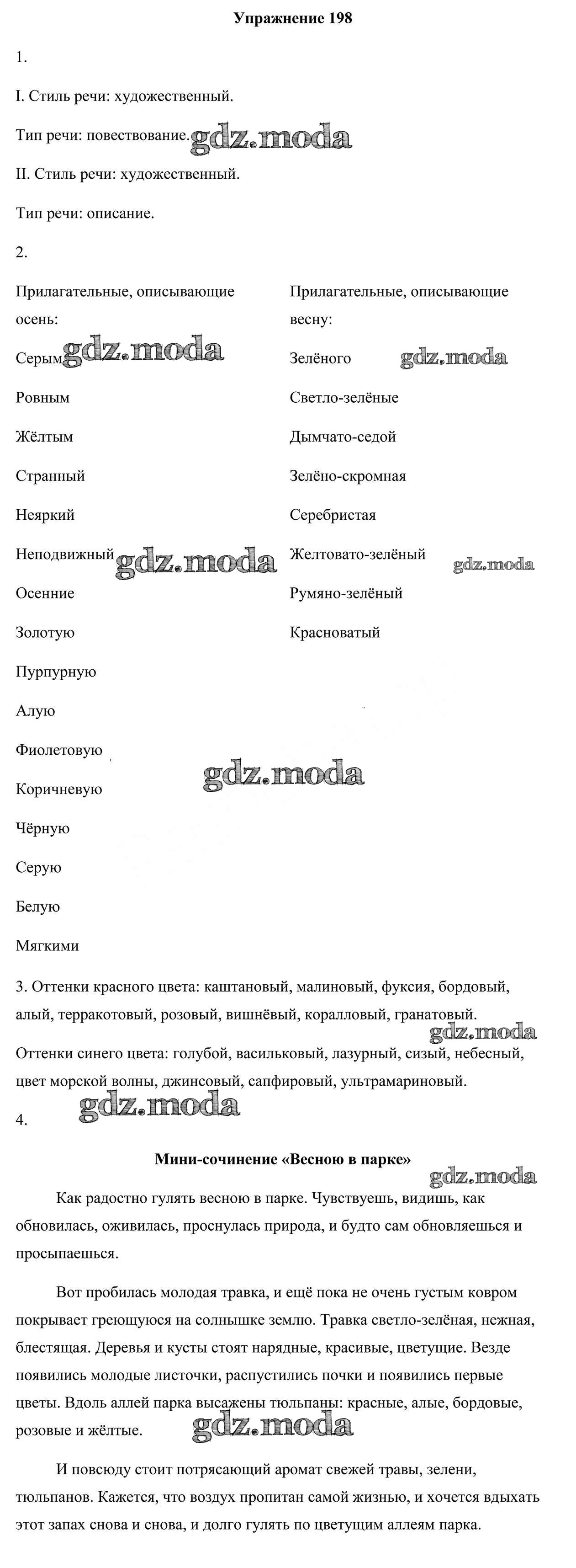 ГДЗ решение к заданию № 198 Русский язык 5 класс Мурина Л.А. Национальный институт образования 2014 Часть 1, Часть 2 ФГОС бесплатно на гдз.мода!