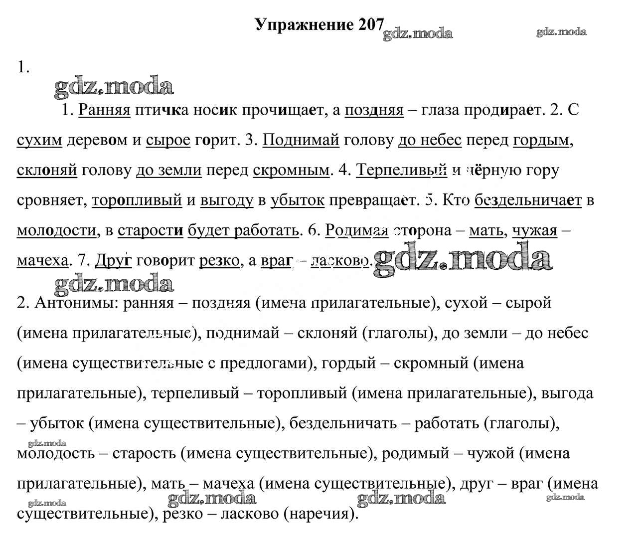 ОТВЕТ на задание № 207 Учебник по Русскому языку 5 класс Мурина