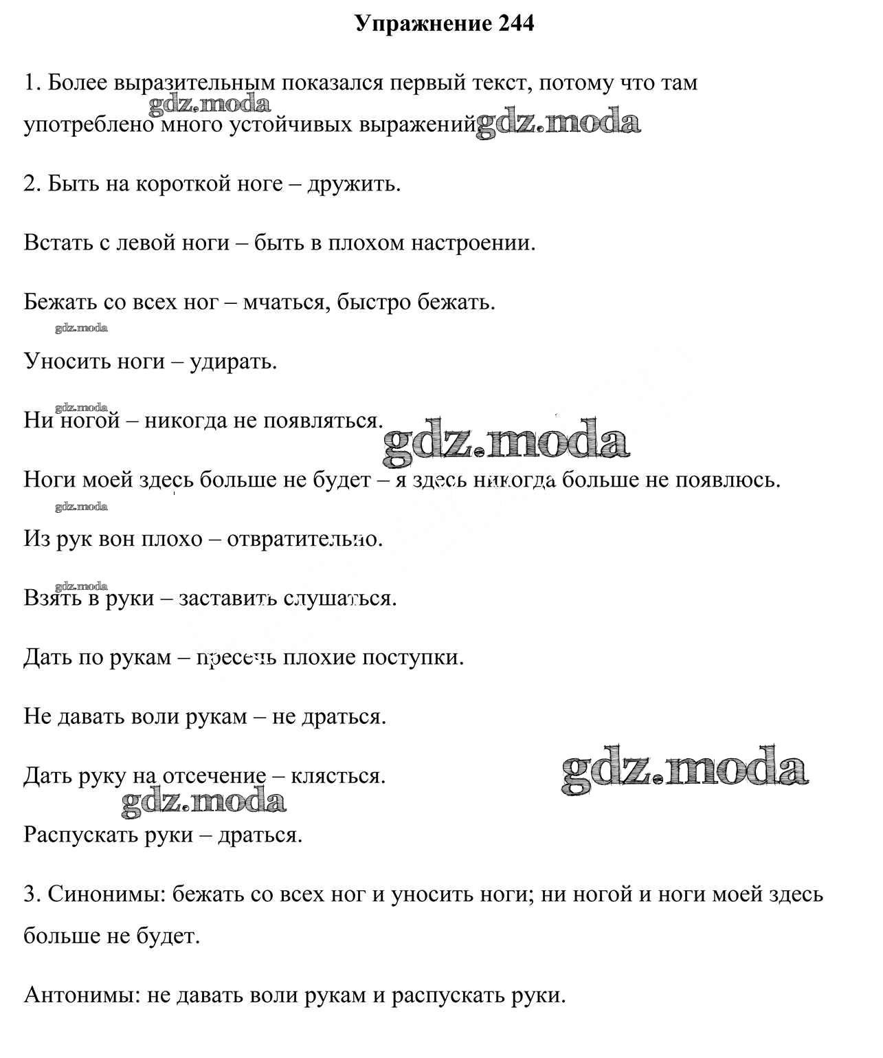 ОТВЕТ на задание № 244 Учебник по Русскому языку 5 класс Мурина