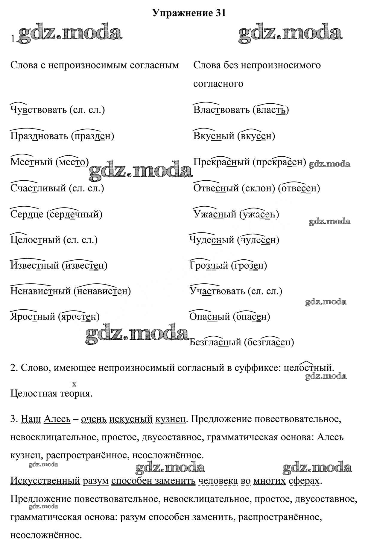 ГДЗ решение к заданию № 31 Русский язык 5 класс Мурина Л.А. Национальный институт образования 2014 Часть 1, Часть 2 ФГОС бесплатно на гдз.мода!