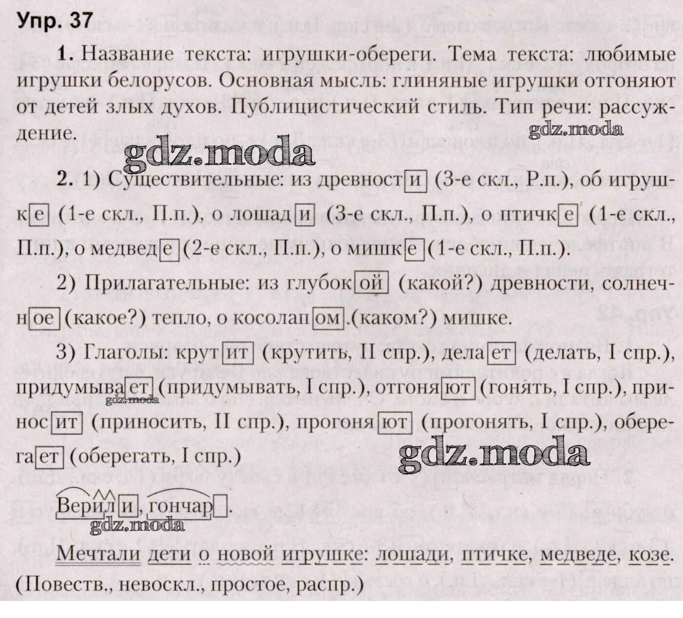 ОТВЕТ на задание № 37 Учебник по Русскому языку 5 класс Мурина