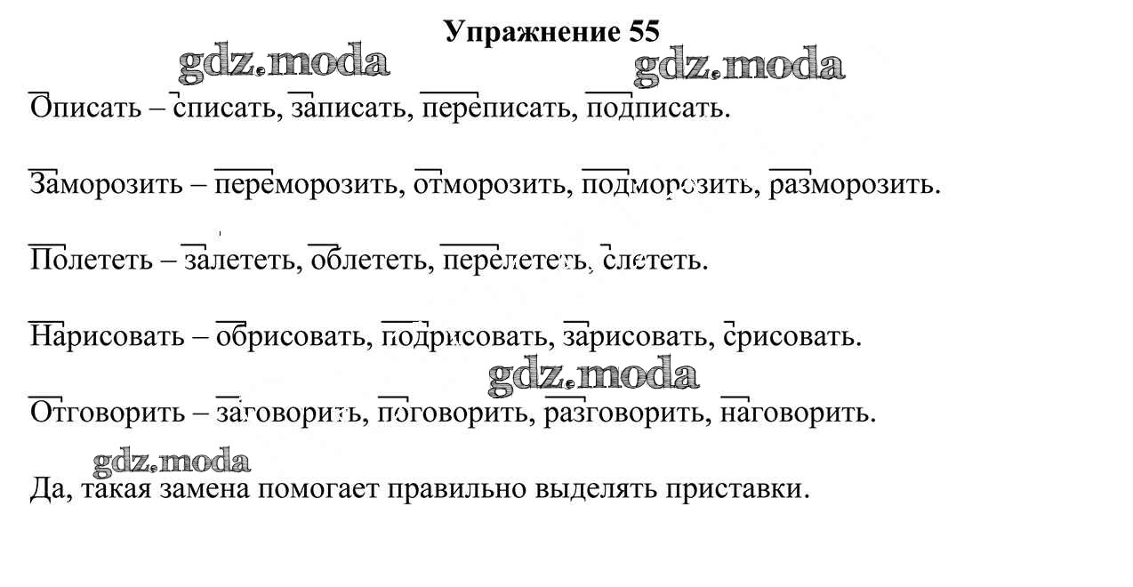 ОТВЕТ на задание № 55 Учебник по Русскому языку 5 класс Мурина