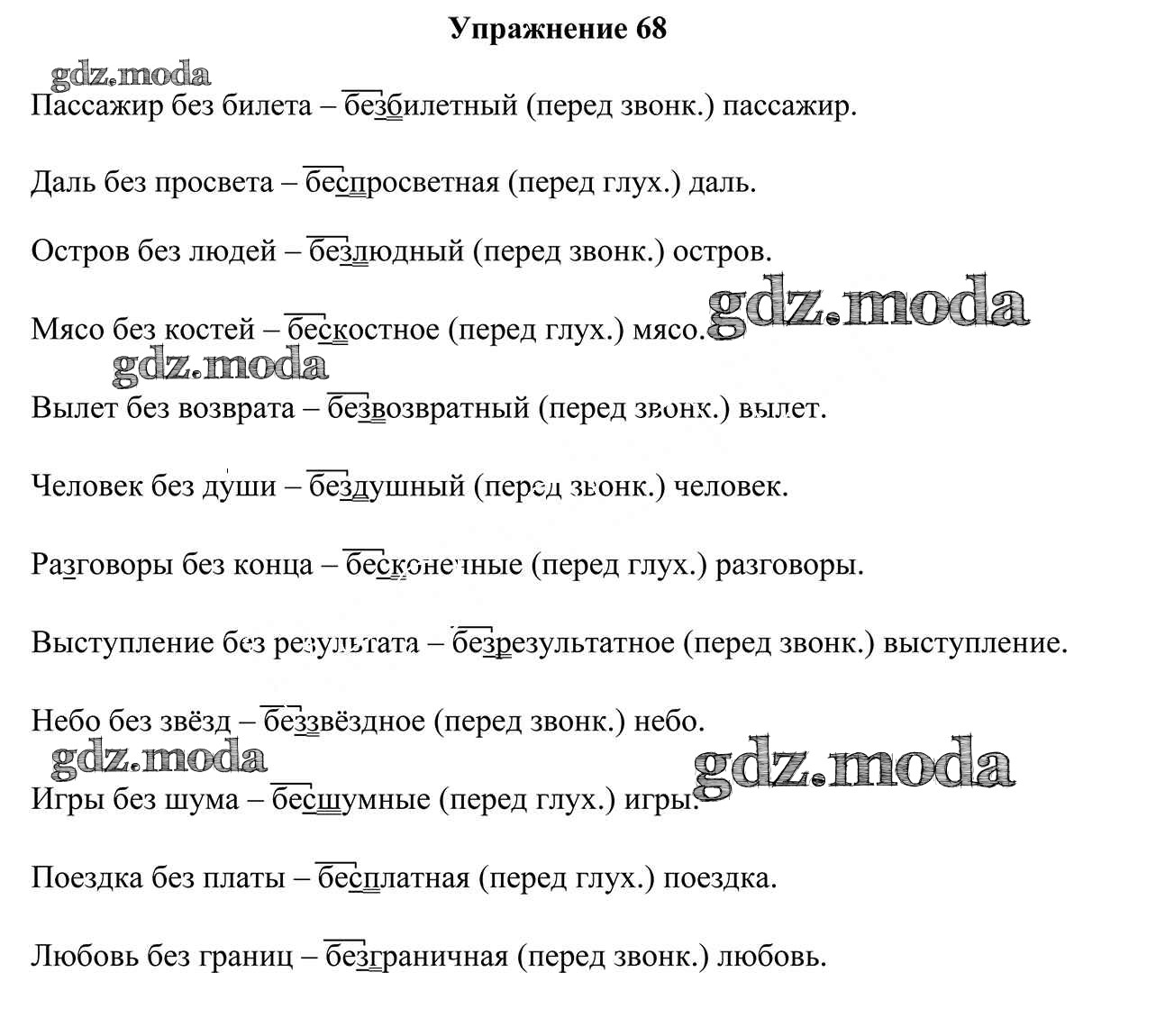 ОТВЕТ на задание № 68 Учебник по Русскому языку 5 класс Мурина