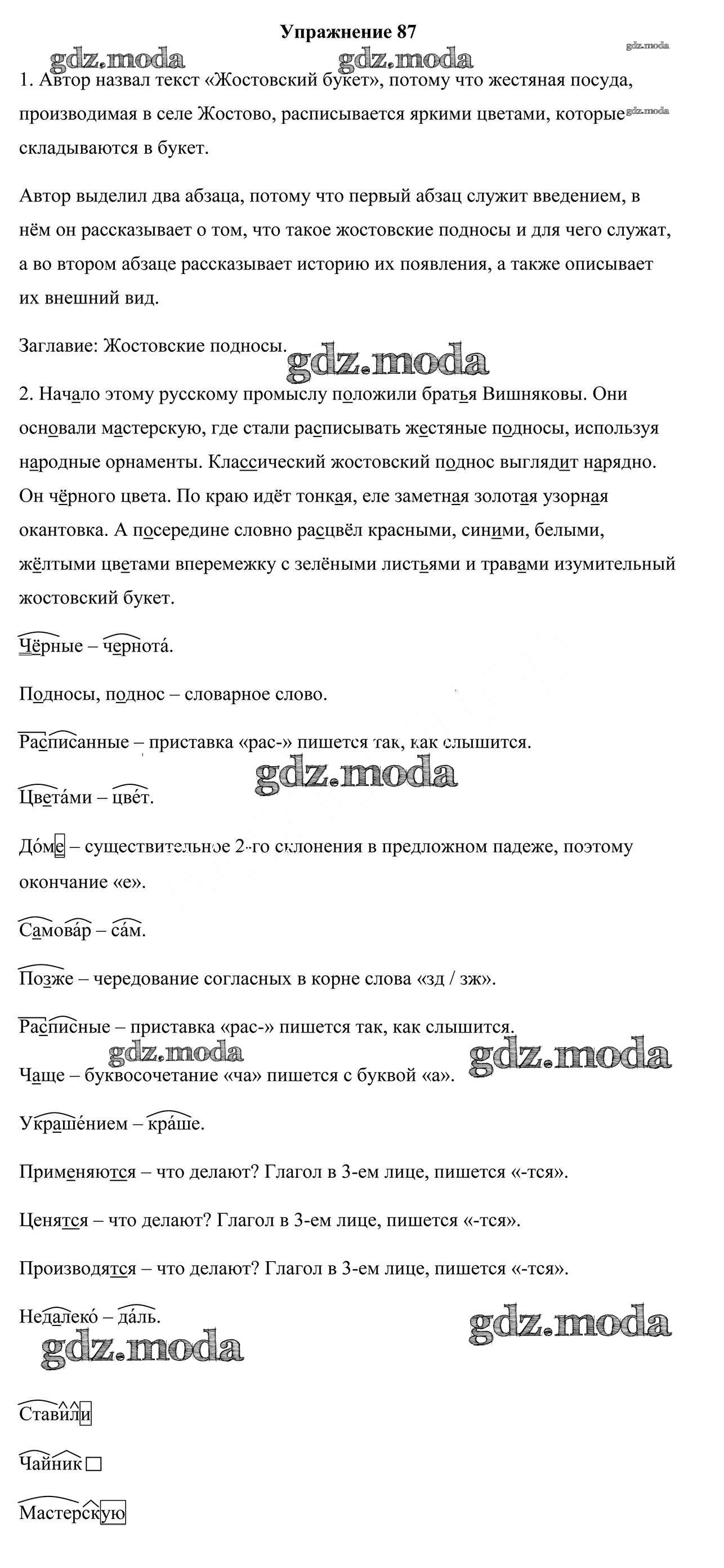 ОТВЕТ на задание № 87 Учебник по Русскому языку 5 класс Мурина