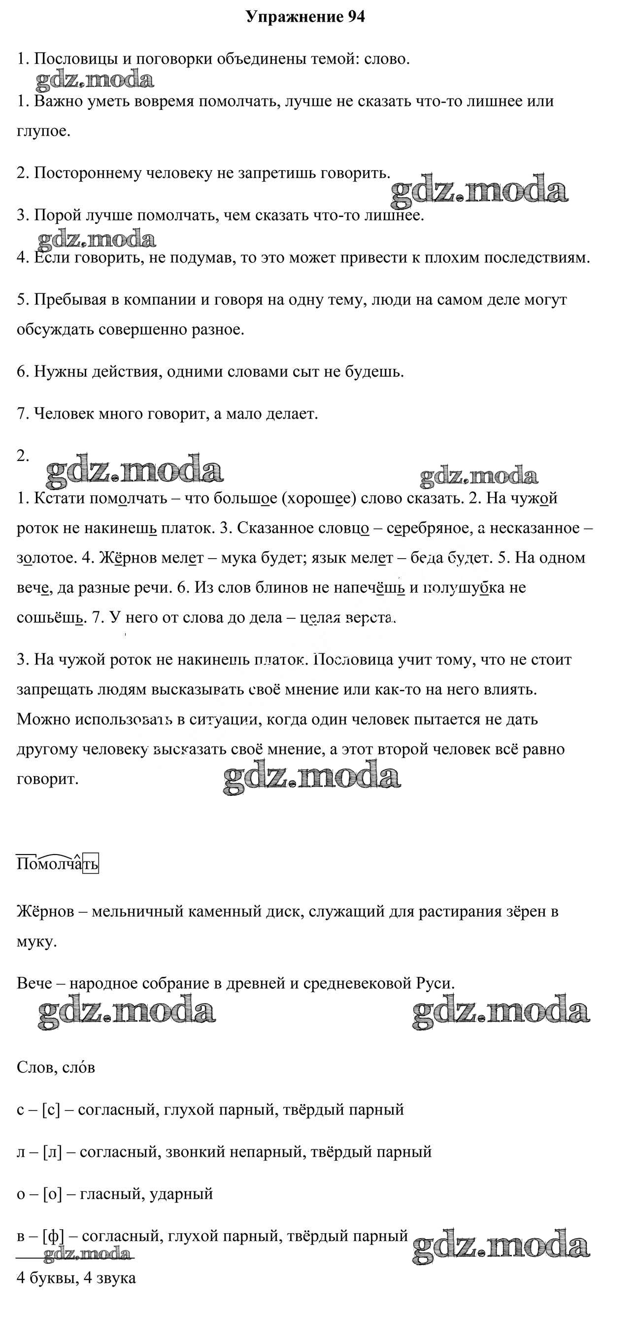 ОТВЕТ на задание № 94 Учебник по Русскому языку 5 класс Мурина