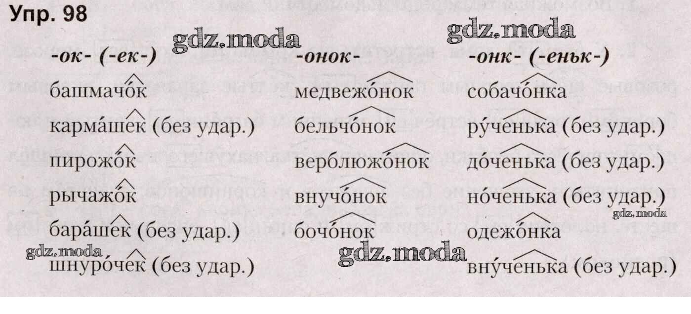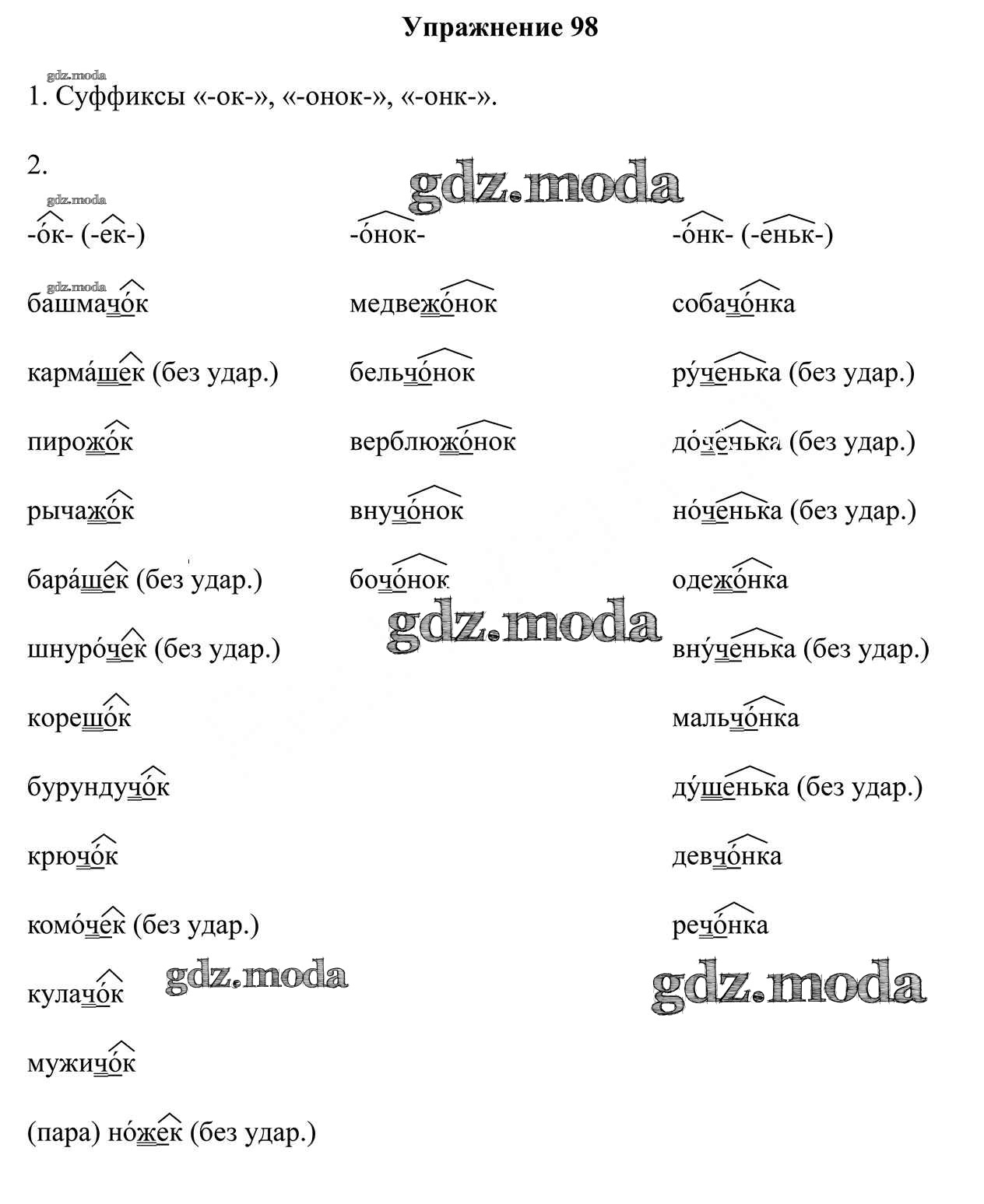 ГДЗ решение к заданию № 98 Русский язык 5 класс Мурина Л.А. Национальный институт образования 2014 Часть 1, Часть 2 ФГОС бесплатно на гдз.мода!