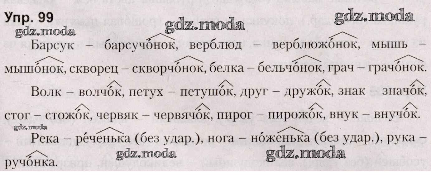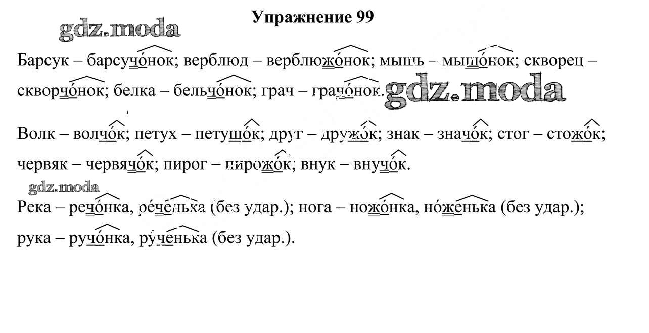 ГДЗ решение к заданию № 99 Русский язык 5 класс Мурина Л.А. Национальный институт образования 2014 Часть 1, Часть 2 ФГОС бесплатно на гдз.мода!