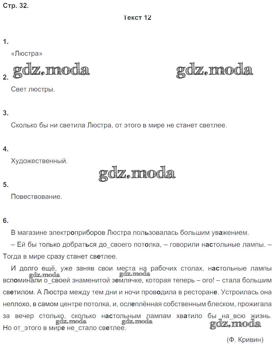 ГДЗ решение к заданию № 32 Русский язык 5 класс рабочая тетрадь. Комплексный анализ текста Малюшкин А.Б. Сфера 2019 ФГОС бесплатно на гдз.мода!