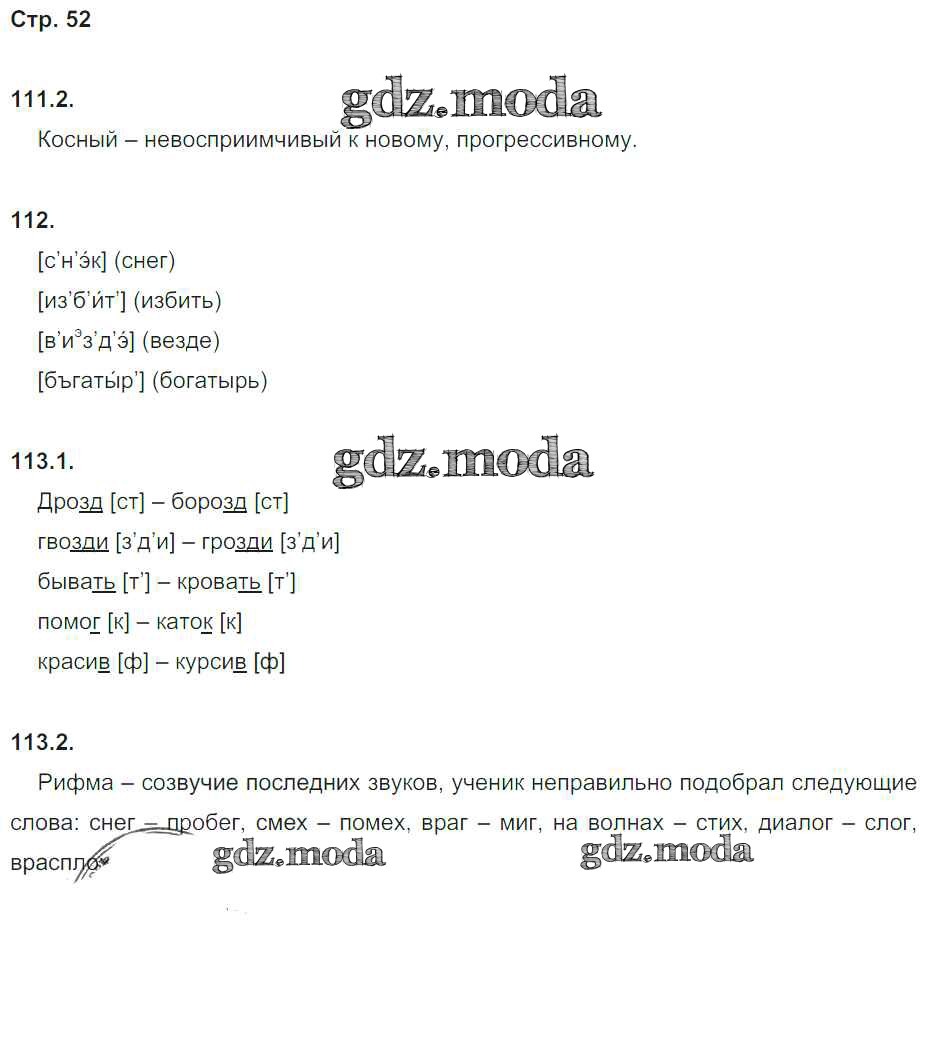 ГДЗ решение к заданию № 52 Русский язык 5 класс рабочая тетрадь Львов В.В. ( к уч. Разумовской) Экзамен 2016 Часть 1, Часть 2 ФГОС бесплатно на гдз.мода!