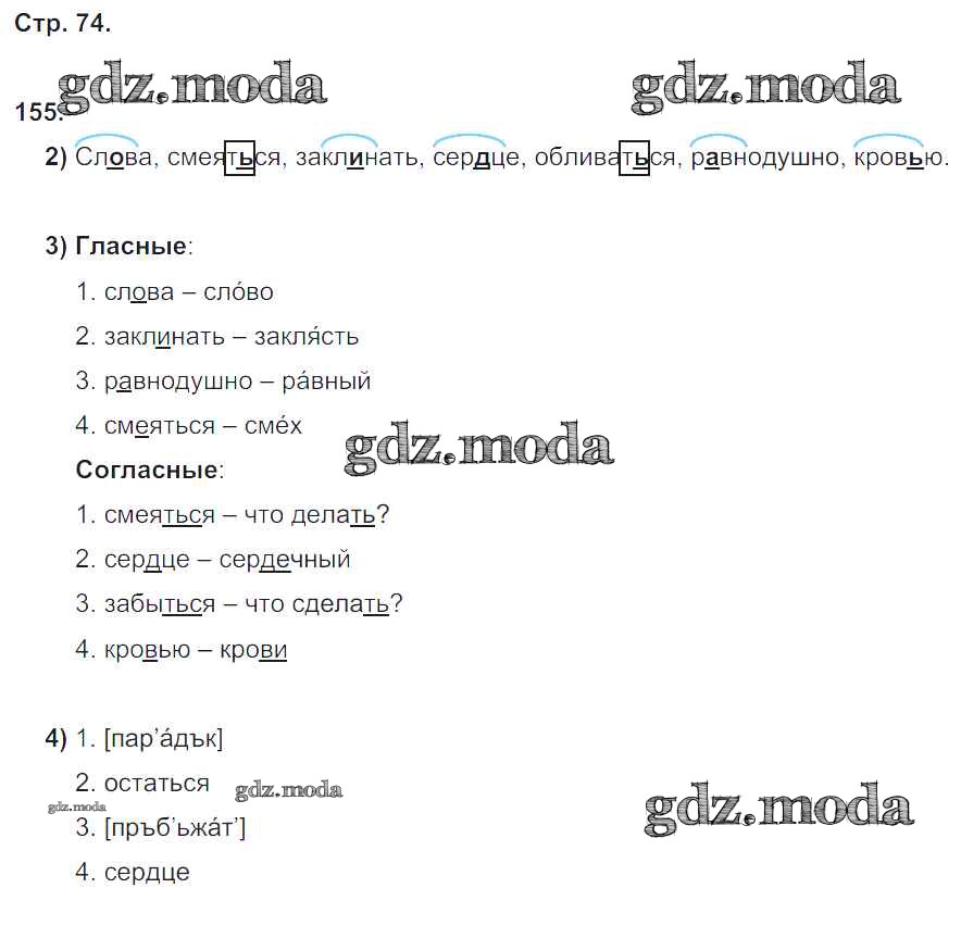 ГДЗ решение к заданию № 74 Русский язык 5 класс рабочая тетрадь Львов В.В. ( к уч. Разумовской) Экзамен 2016 Часть 1, Часть 2 ФГОС бесплатно на гдз.мода!