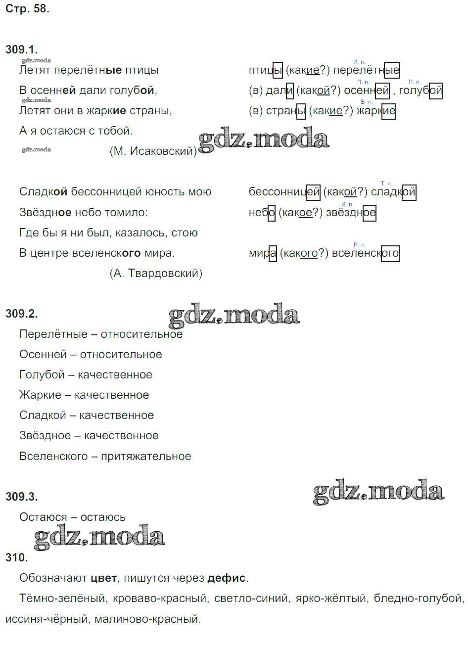 ГДЗ решение к заданию № 58 Русский язык 5 класс рабочая тетрадь Львов В.В. ( к уч. Разумовской) Экзамен 2016 Часть 1, Часть 2 ФГОС бесплатно на гдз.мода!