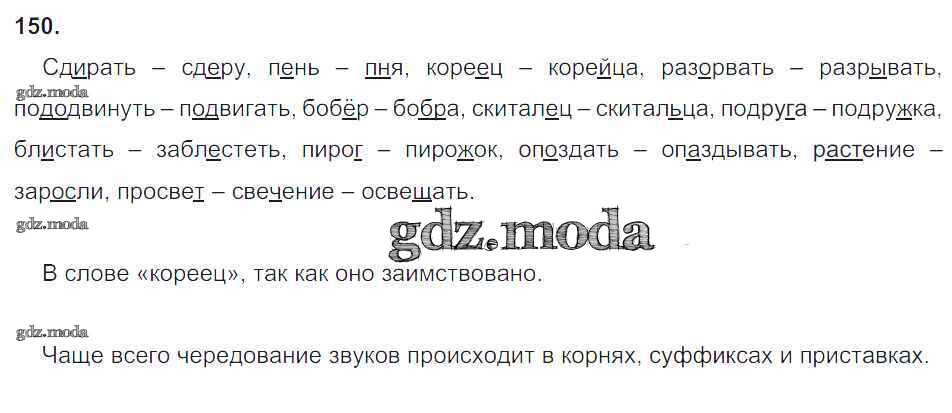 ОТВЕТ на задание № 150 Рабочая тетрадь по Русскому языку 5 класс Львов УМК