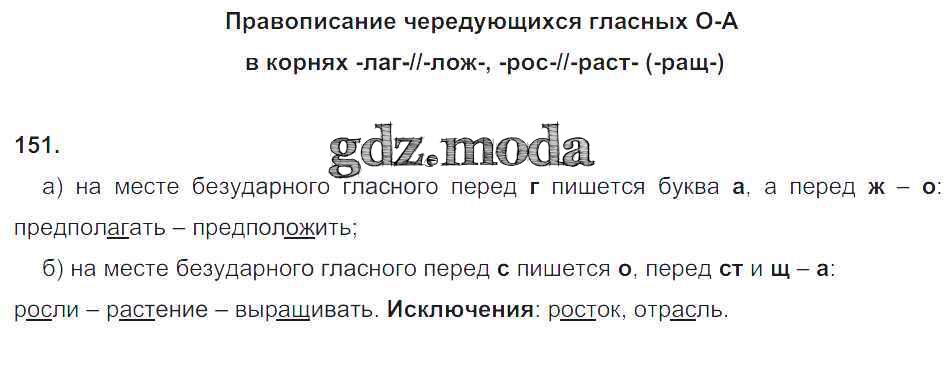 ОТВЕТ на задание № 151 Рабочая тетрадь по Русскому языку 5 класс Львов УМК