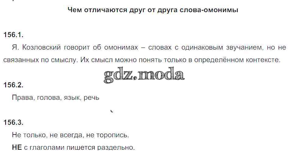 ОТВЕТ на задание № 156 Рабочая тетрадь по Русскому языку 5 класс Львов УМК