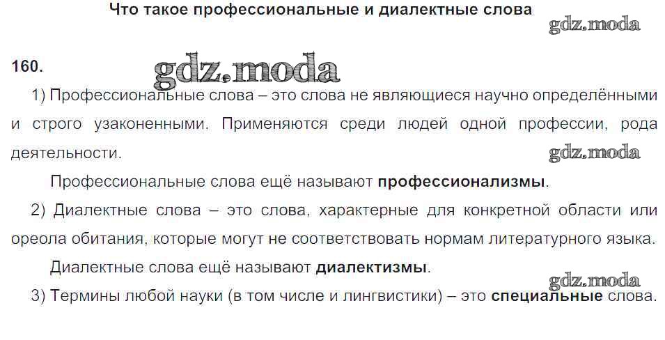 ОТВЕТ на задание № 160 Рабочая тетрадь по Русскому языку 5 класс Львов УМК