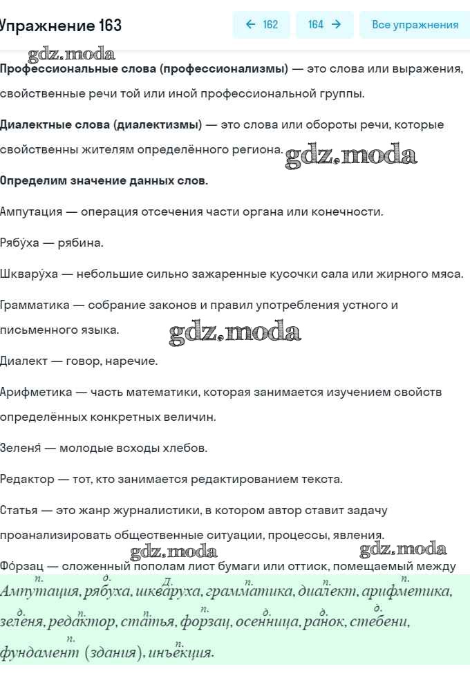 ОТВЕТ на задание № 163 Рабочая тетрадь по Русскому языку 5 класс Львов УМК