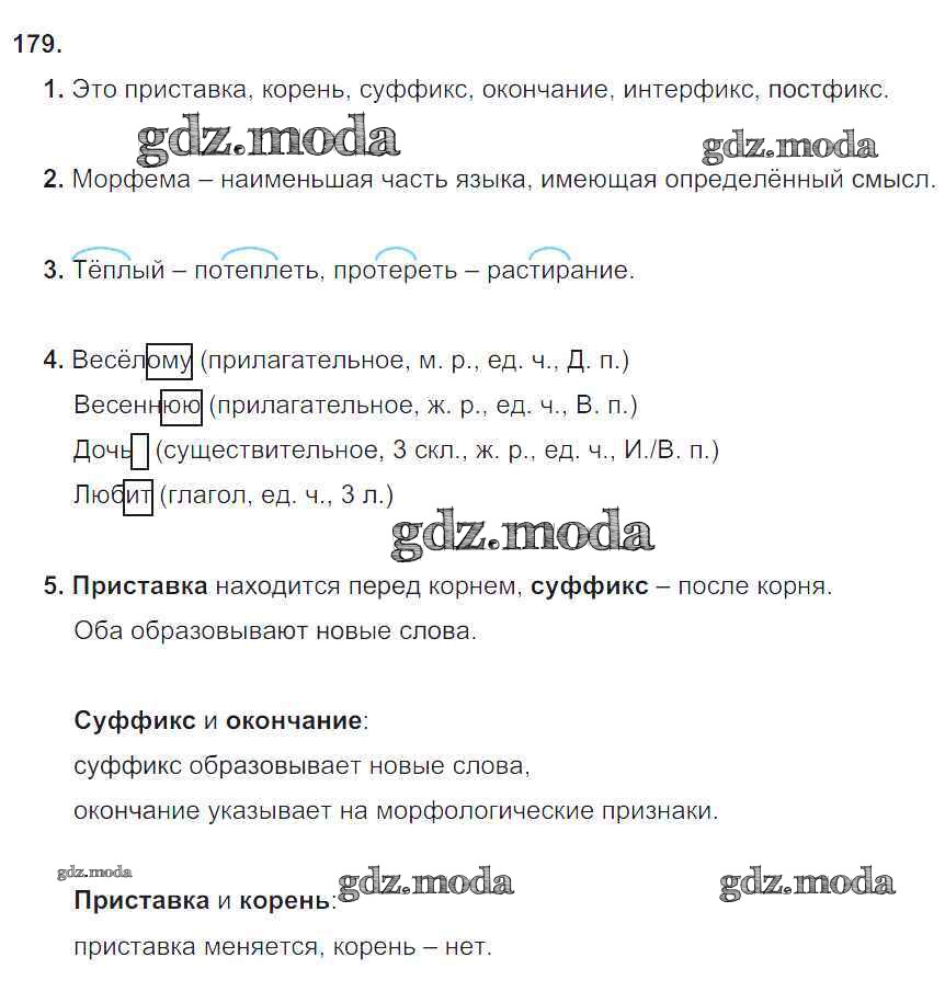 ОТВЕТ на задание № 179 Рабочая тетрадь по Русскому языку 5 класс Львов УМК