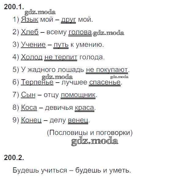 ГДЗ решение к заданию № 200 Русский язык 5 класс рабочая тетрадь Львов В.В. ( к уч. Разумовской) Экзамен 2016 Часть 1, Часть 2 ФГОС бесплатно на гдз.мода!