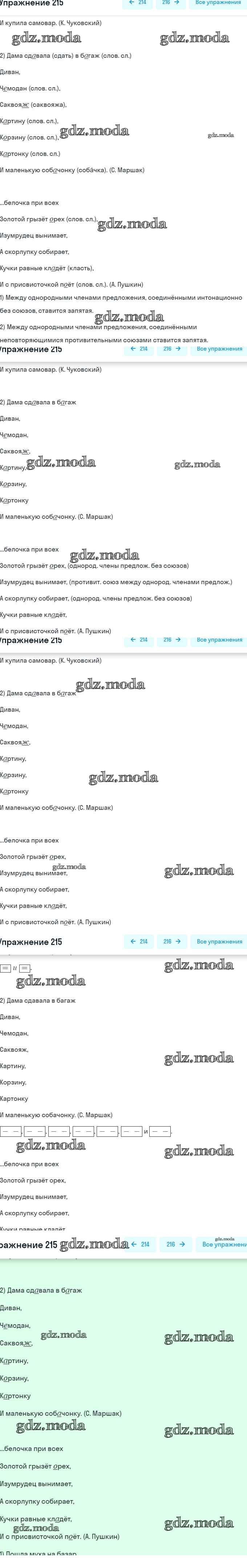 ГДЗ решение к заданию № 215 Русский язык 5 класс рабочая тетрадь Львов В.В. ( к уч. Разумовской) Экзамен 2016 Часть 1, Часть 2 ФГОС бесплатно на гдз.мода!