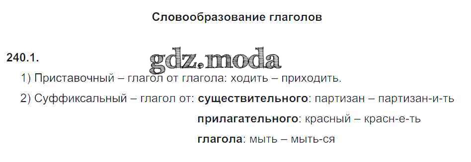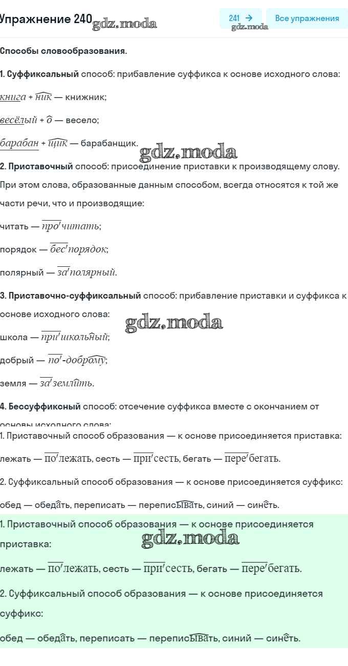 ОТВЕТ на задание № 240 Рабочая тетрадь по Русскому языку 5 класс Львов УМК
