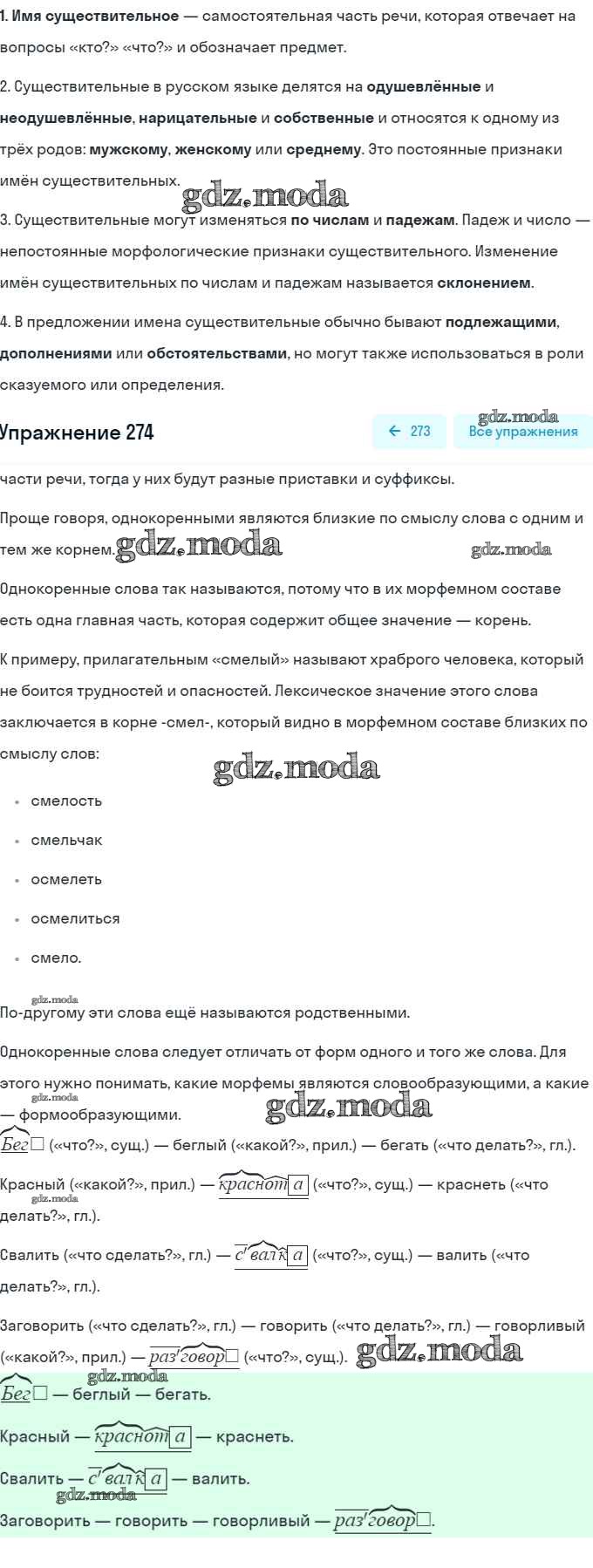 ОТВЕТ на задание № 274 Рабочая тетрадь по Русскому языку 5 класс Львов УМК