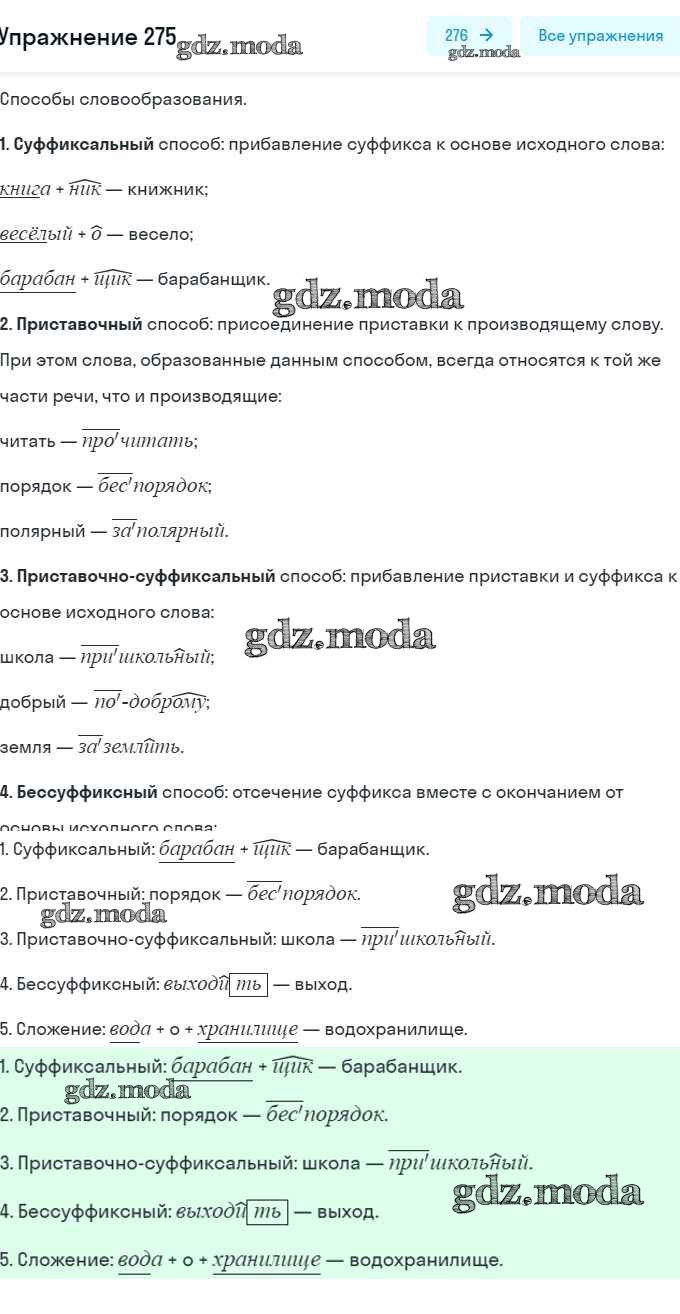 ГДЗ решение к заданию № 275 Русский язык 5 класс рабочая тетрадь Львов В.В. ( к уч. Разумовской) Экзамен 2016 Часть 1, Часть 2 ФГОС бесплатно на гдз.мода!
