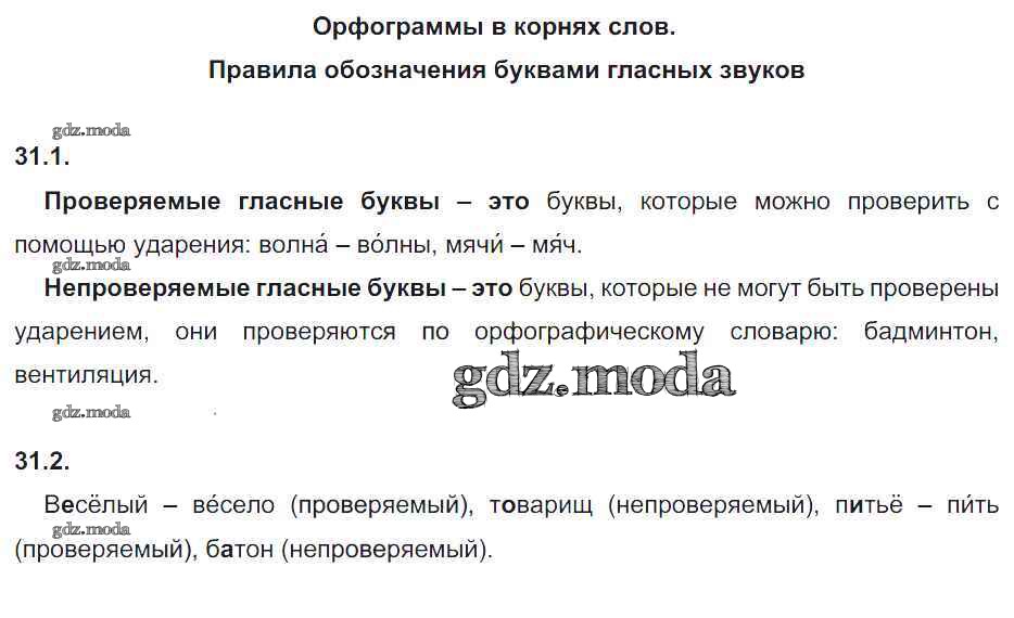 ГДЗ решение к заданию № 31 Русский язык 5 класс рабочая тетрадь Львов В.В. ( к уч. Разумовской) Экзамен 2016 Часть 1, Часть 2 ФГОС бесплатно на гдз.мода!