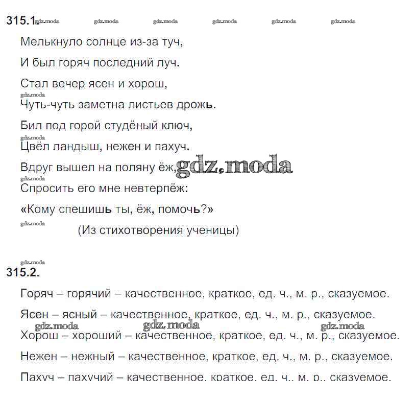 ГДЗ решение к заданию № 315 Русский язык 5 класс рабочая тетрадь Львов В.В. ( к уч. Разумовской) Экзамен 2016 Часть 1, Часть 2 ФГОС бесплатно на гдз.мода!