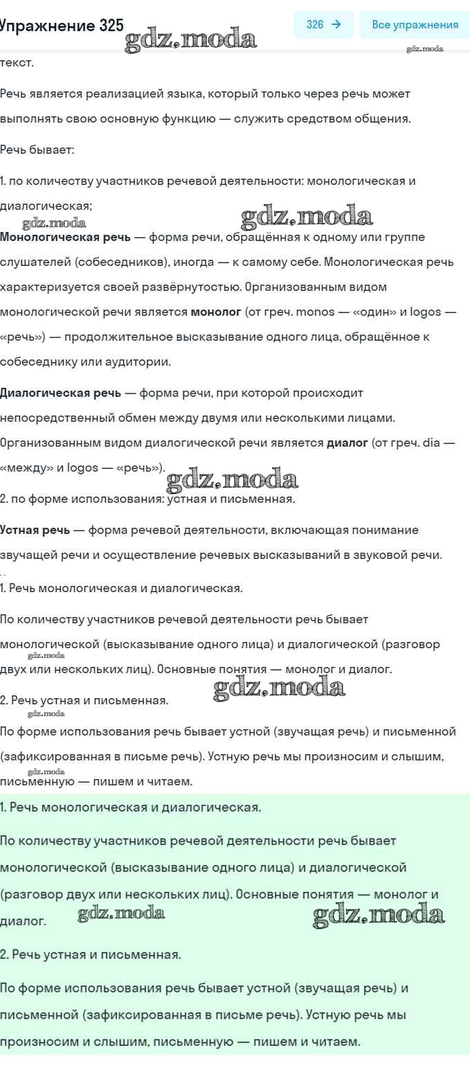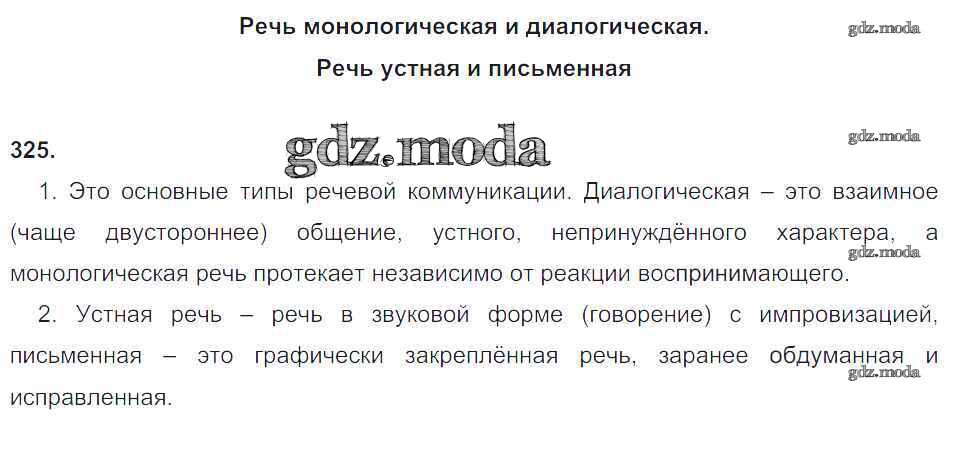 ОТВЕТ на задание № 325 Рабочая тетрадь по Русскому языку 5 класс Львов УМК
