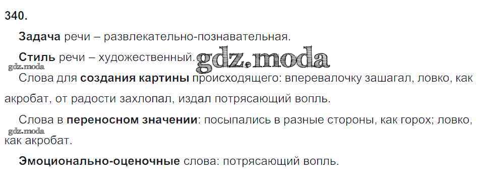 ОТВЕТ на задание № 340 Рабочая тетрадь по Русскому языку 5 класс Львов УМК