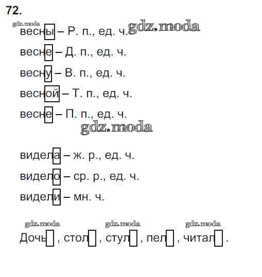 ОТВЕТ на задание № 72 Рабочая тетрадь по Русскому языку 5 класс Львов УМК
