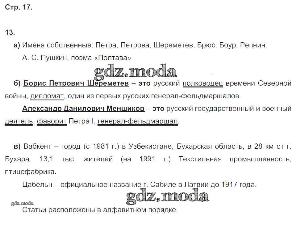 ОТВЕТ на задание № 17 Рабочая тетрадь по Русскому языку 5 класс Тростенцова УМК