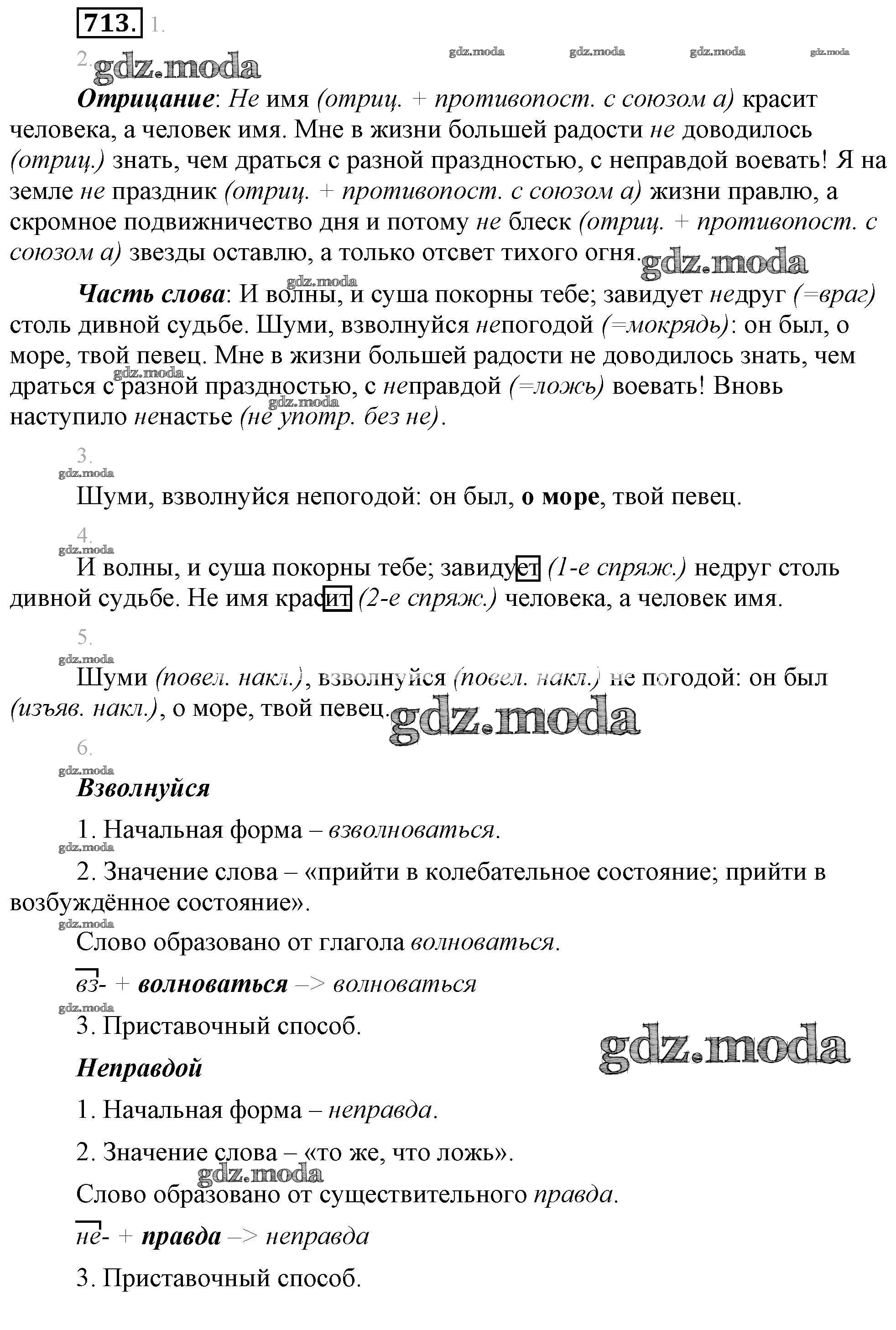 ОТВЕТ на задание № 713 Учебник по Русскому языку 5 класс Разумовская