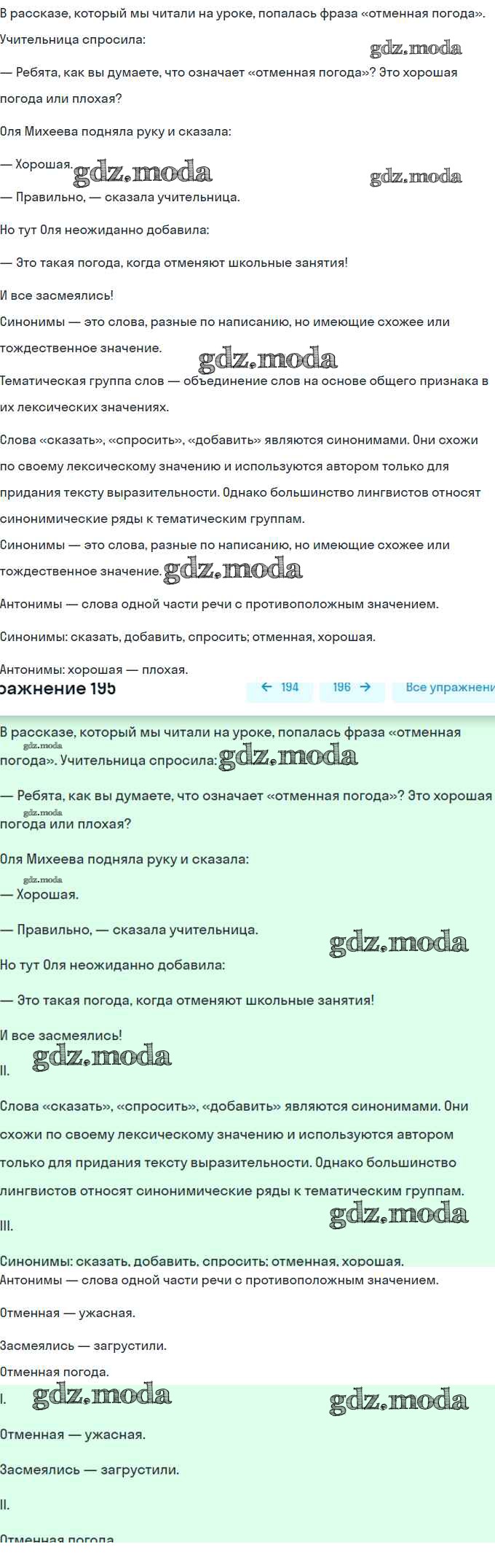 ОТВЕТ на задание № 195 Учебник по Русскому языку 5 класс Рыбченкова