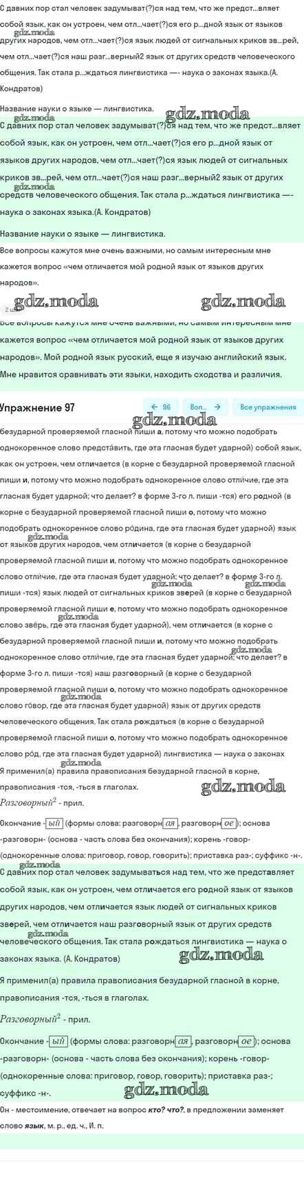 ОТВЕТ на задание № 97 Учебник по Русскому языку 5 класс Шмелёв Алгоритм успеха