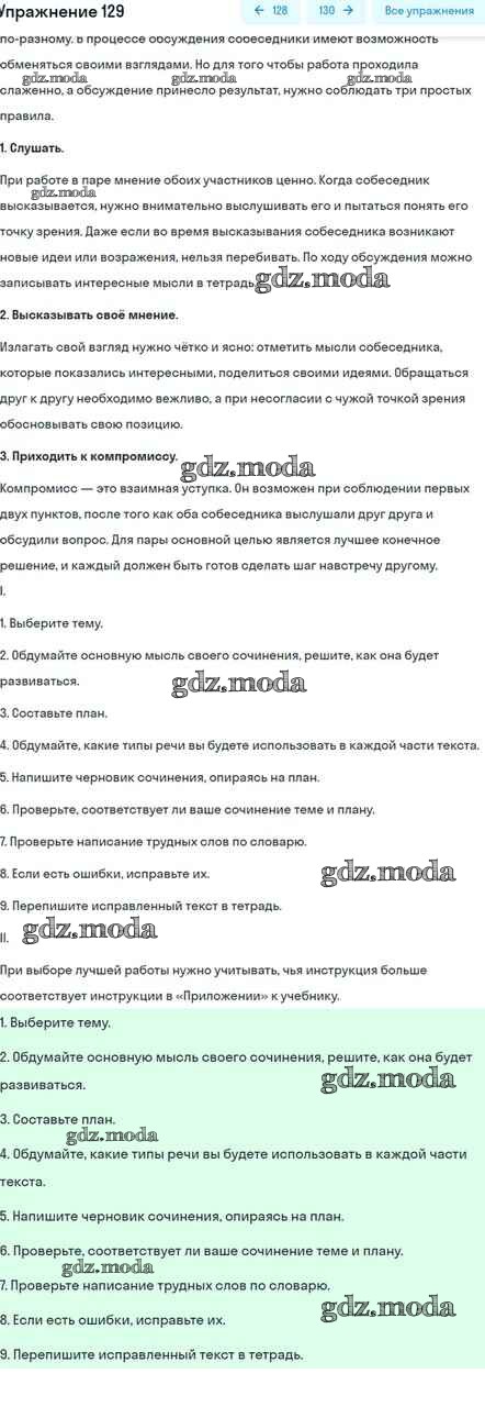 ОТВЕТ на задание № 129 Учебник по Русскому языку 5 класс Шмелёв Алгоритм успеха