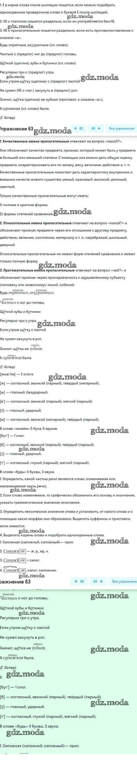 ОТВЕТ на задание № 63 Учебник по Русскому языку 5 класс Шмелёв Алгоритм успеха