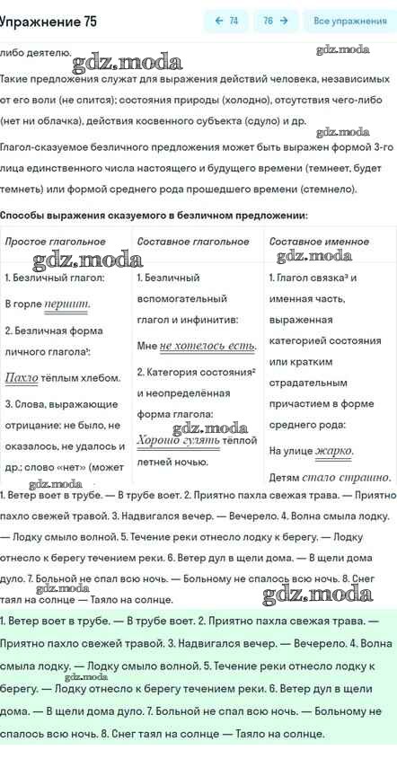 ОТВЕТ на задание № 75 Учебник по Русскому языку 5 класс Шмелёв Алгоритм успеха