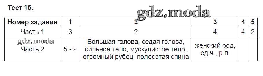 ОТВЕТ на задание № 15 Тесты по Русскому языку 5 класс Черногрудова УМК