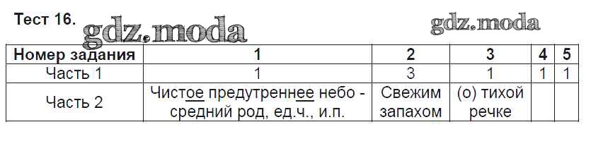 ОТВЕТ на задание № 16 Тесты по Русскому языку 5 класс Черногрудова УМК