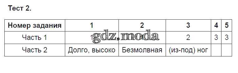 ОТВЕТ на задание № 2 Тесты по Русскому языку 5 класс Черногрудова УМК