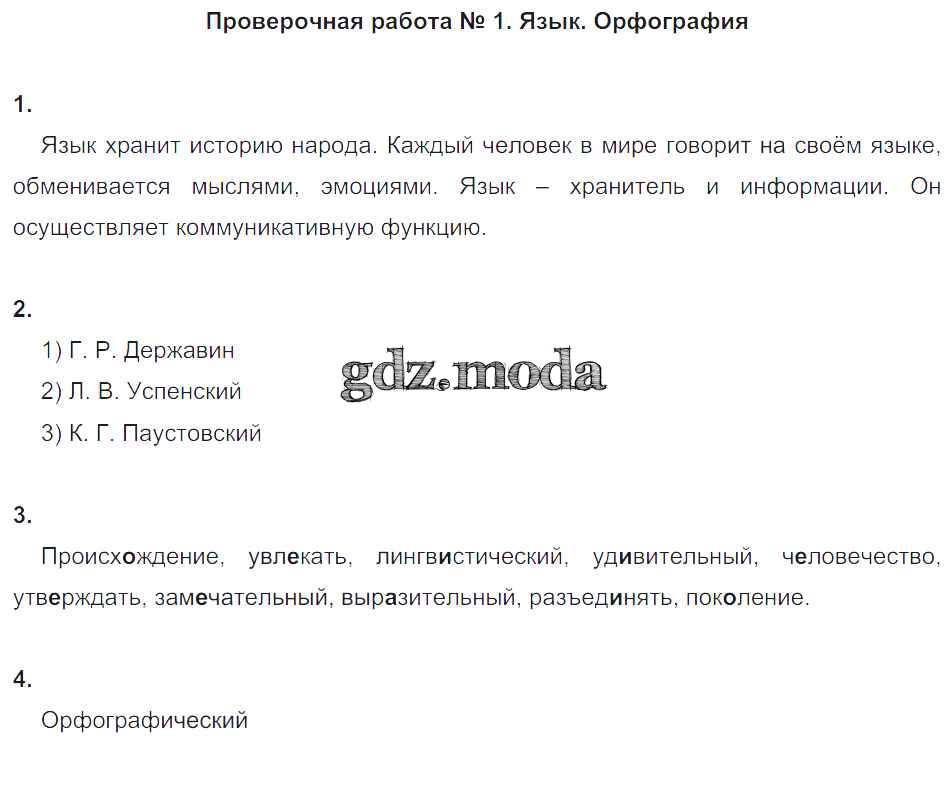 ГДЗ решение к заданию № 1 Русский язык 5 класс тетрадь для оценки качества знаний Львов В.В. (к уч. Разумовской) Дрофа 2014 ФГОС бесплатно на гдз.мода!