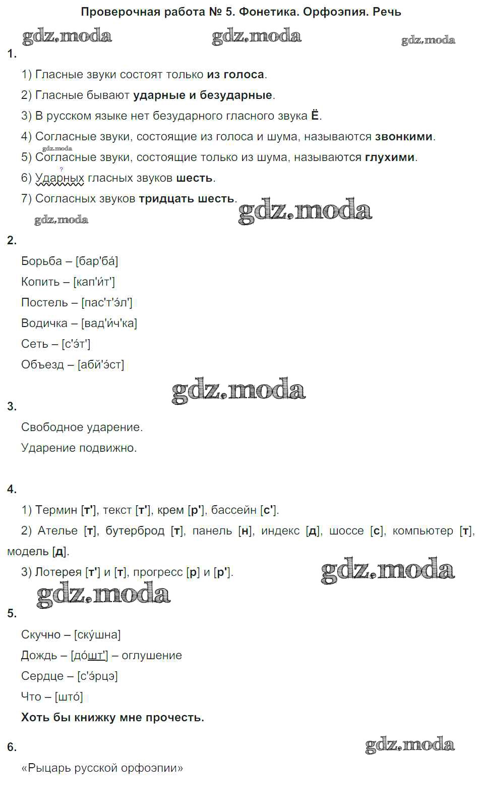 ГДЗ решение к заданию № 5 Русский язык 5 класс тетрадь для оценки качества знаний Львов В.В. (к уч. Разумовской) Дрофа 2014 ФГОС бесплатно на гдз.мода!