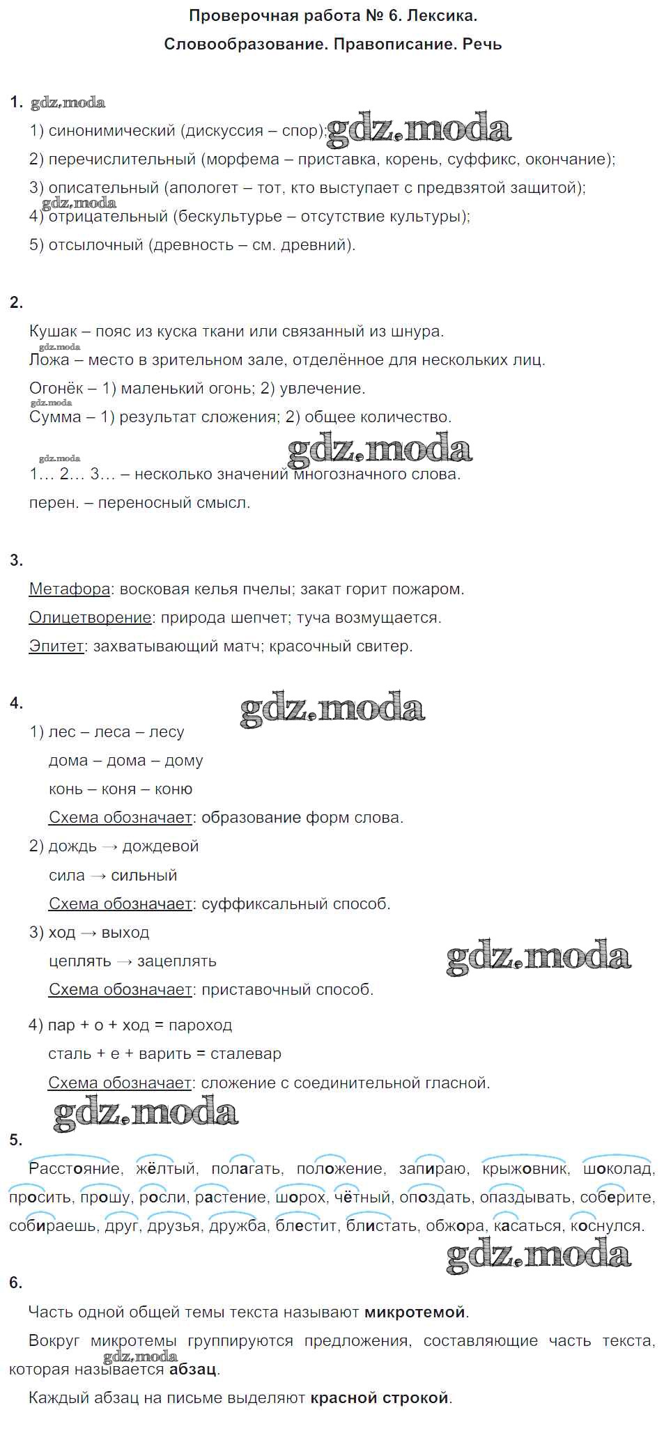 ГДЗ решение к заданию № 6 Русский язык 5 класс тетрадь для оценки качества знаний Львов В.В. (к уч. Разумовской) Дрофа 2014 ФГОС бесплатно на гдз.мода!