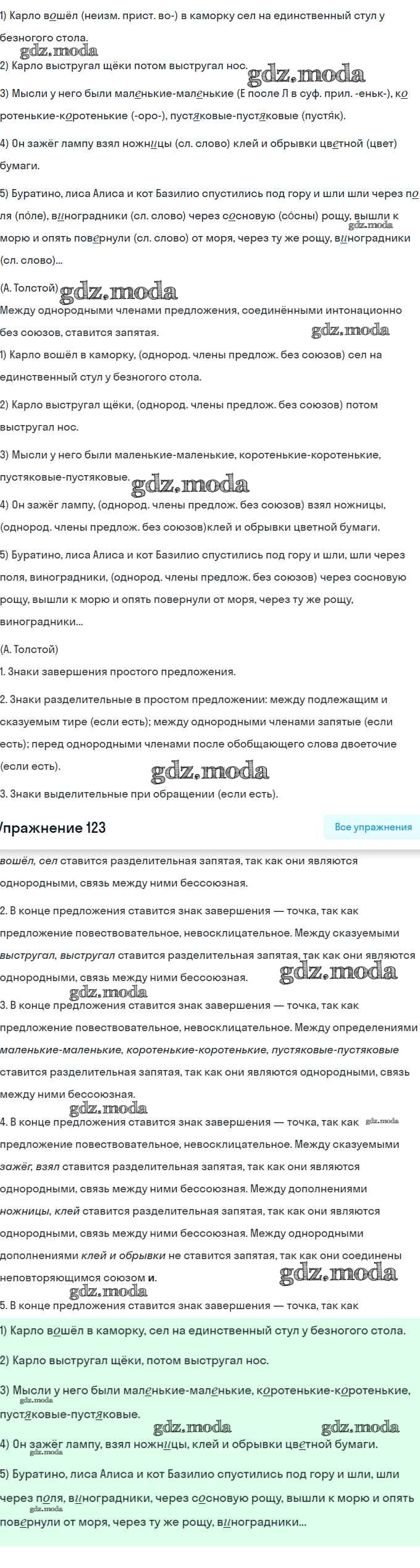 ОТВЕТ на задание № 123 Рабочая тетрадь по Русскому языку 5 класс Янченко