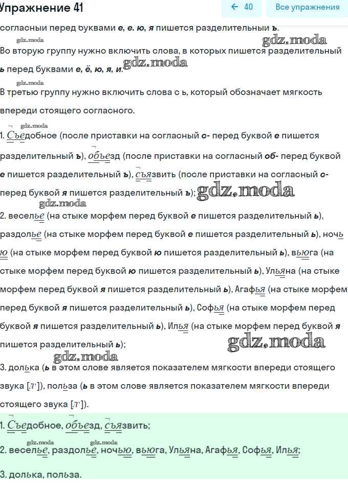 ОТВЕТ на задание № 41 Рабочая тетрадь по Русскому языку 5 класс Янченко