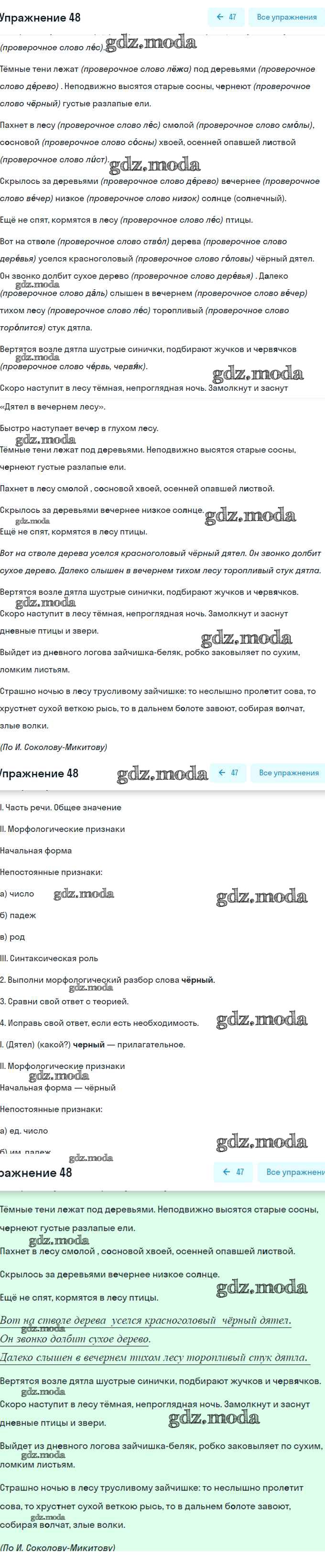 ГДЗ решение к заданию № 48 Русский язык 5 класс рабочая тетрадь Янченко Просвещение 2019 Часть 1, Часть 2 ФГОС бесплатно на гдз.мода!