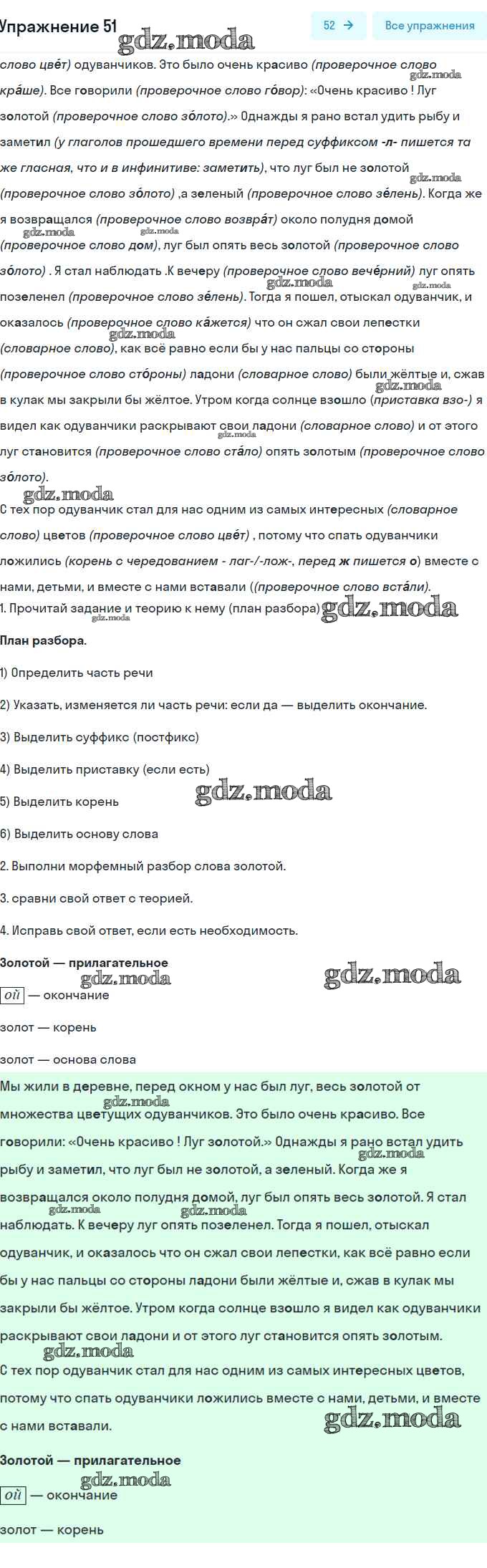 ГДЗ решение к заданию № 51 Русский язык 5 класс рабочая тетрадь Янченко Просвещение 2019 Часть 1, Часть 2 ФГОС бесплатно на гдз.мода!